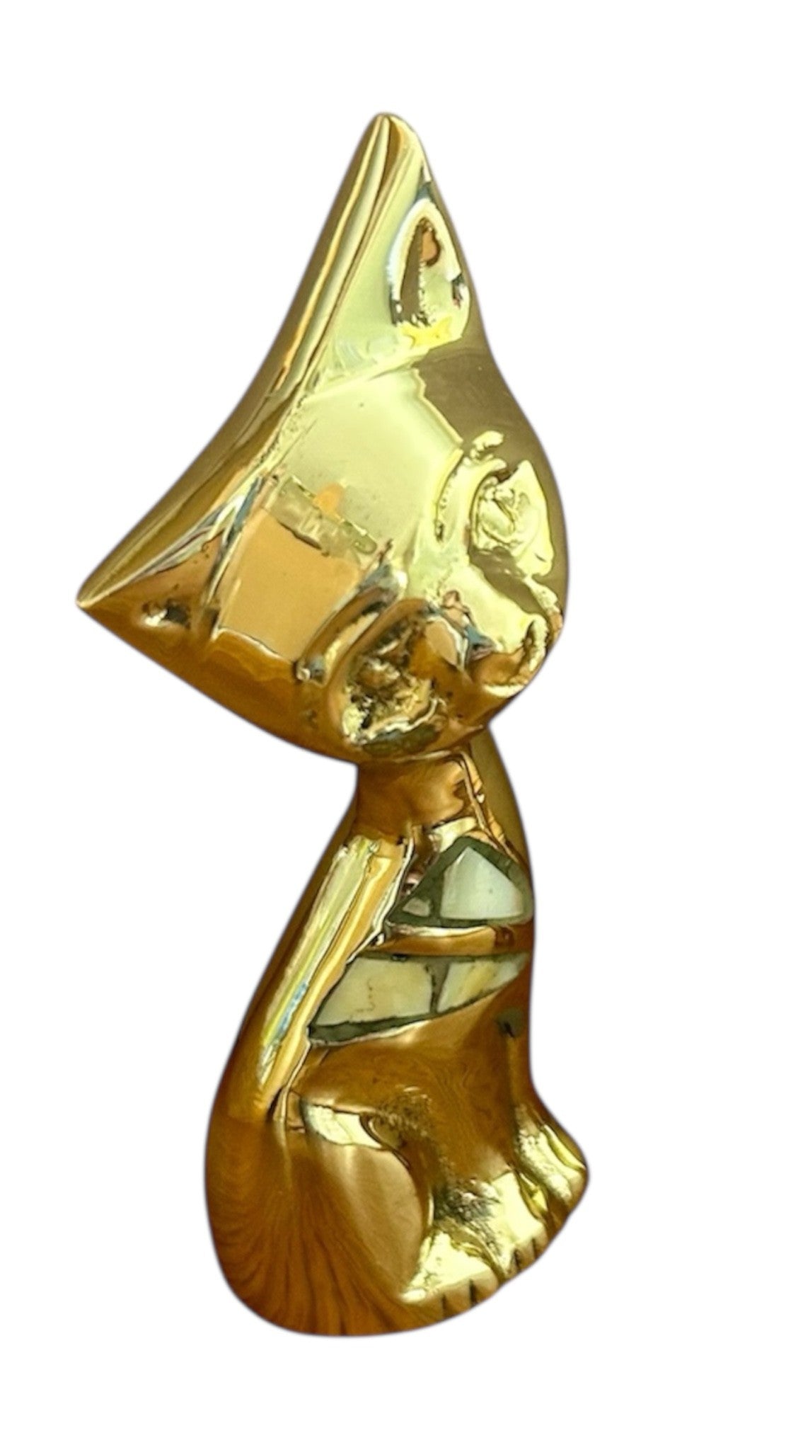 Beautiful brass Cat with mother of pearl inlay.