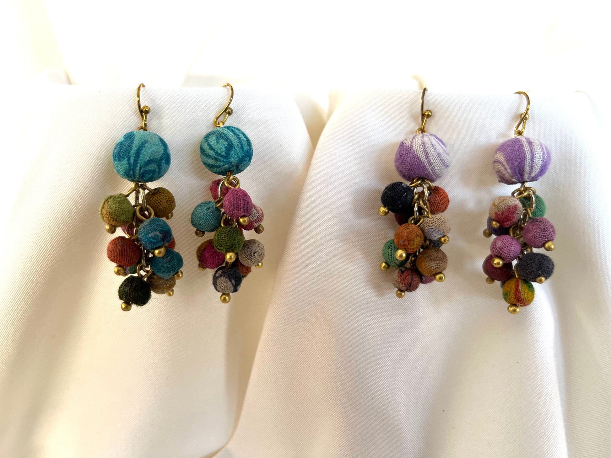 Each pair will vary as different colors and patterns of fabric are used to make the beads.