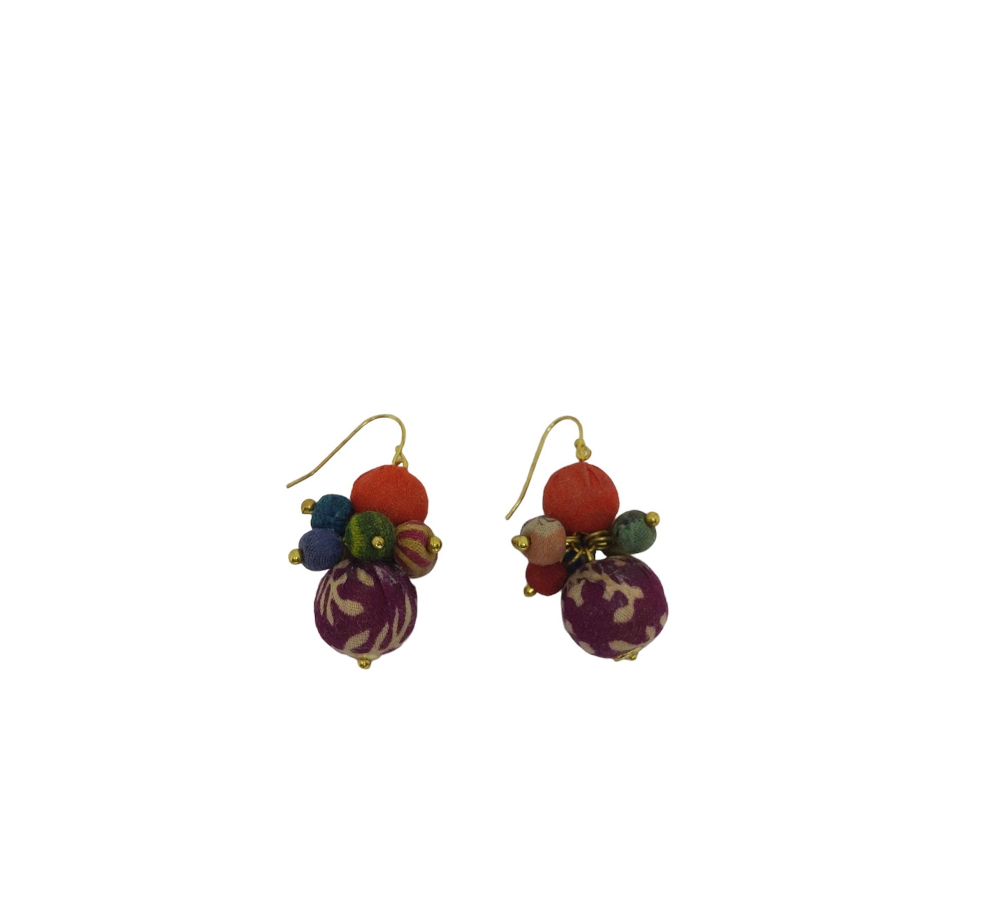 These lightweight earrings have been made from repurposed wood beads covered in recycled sari.